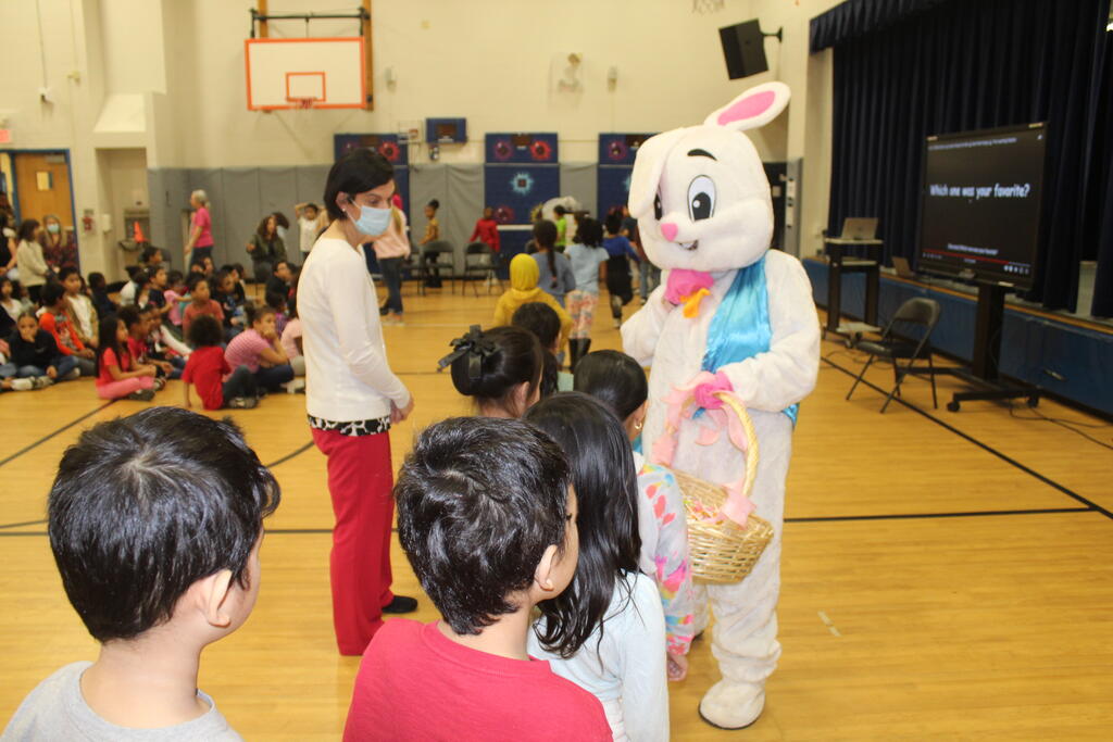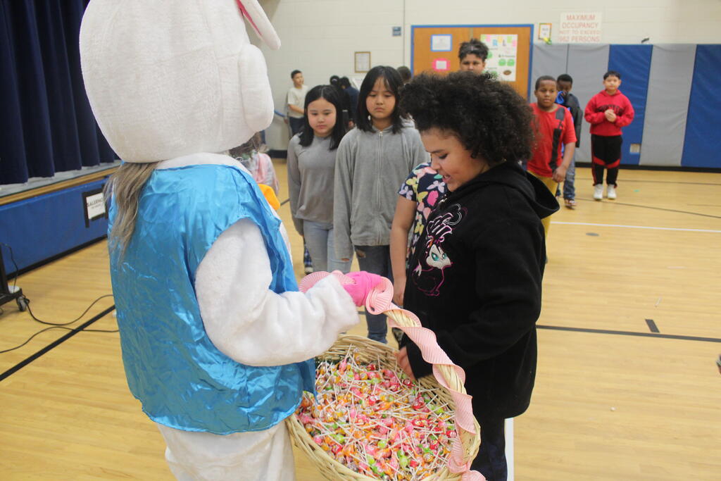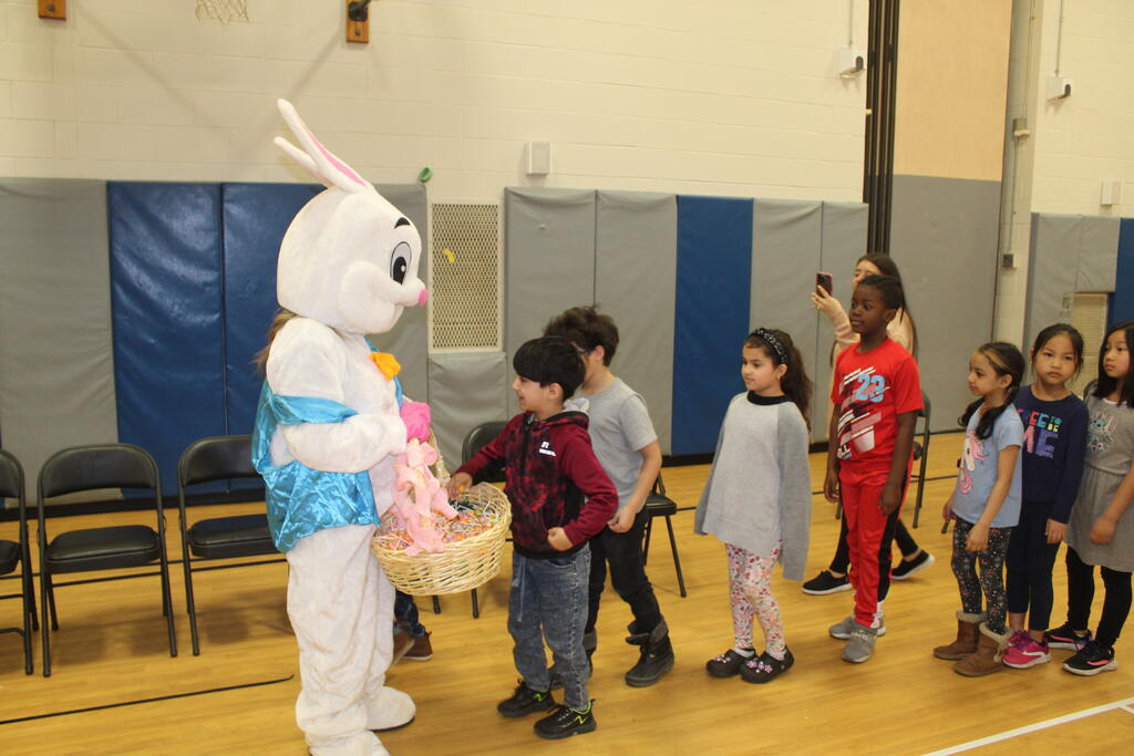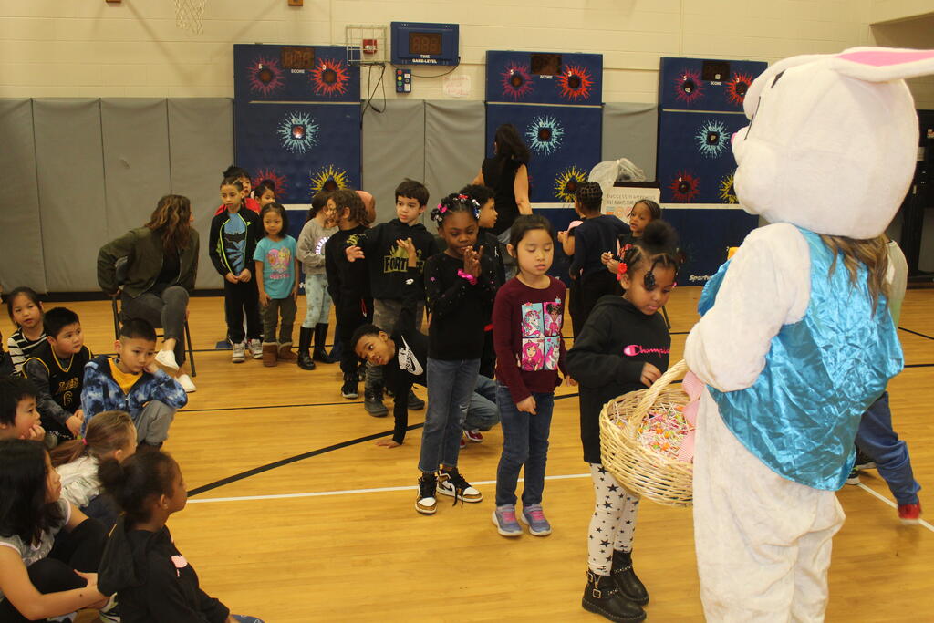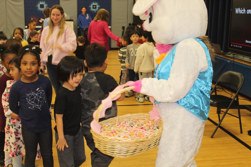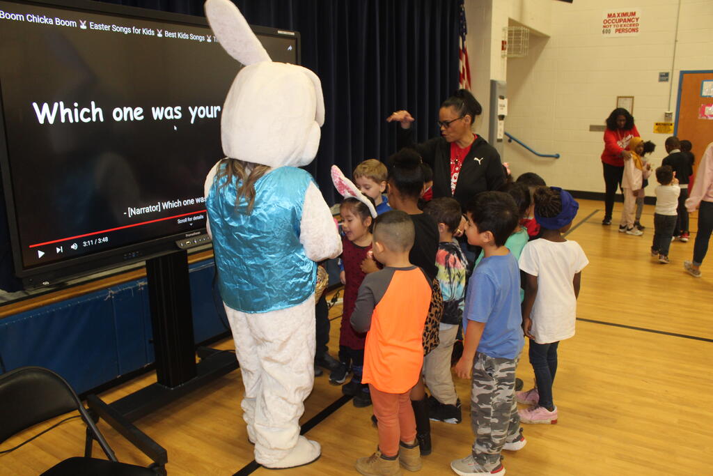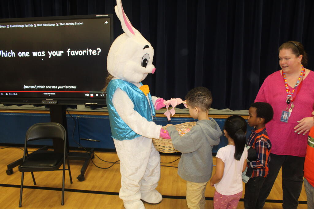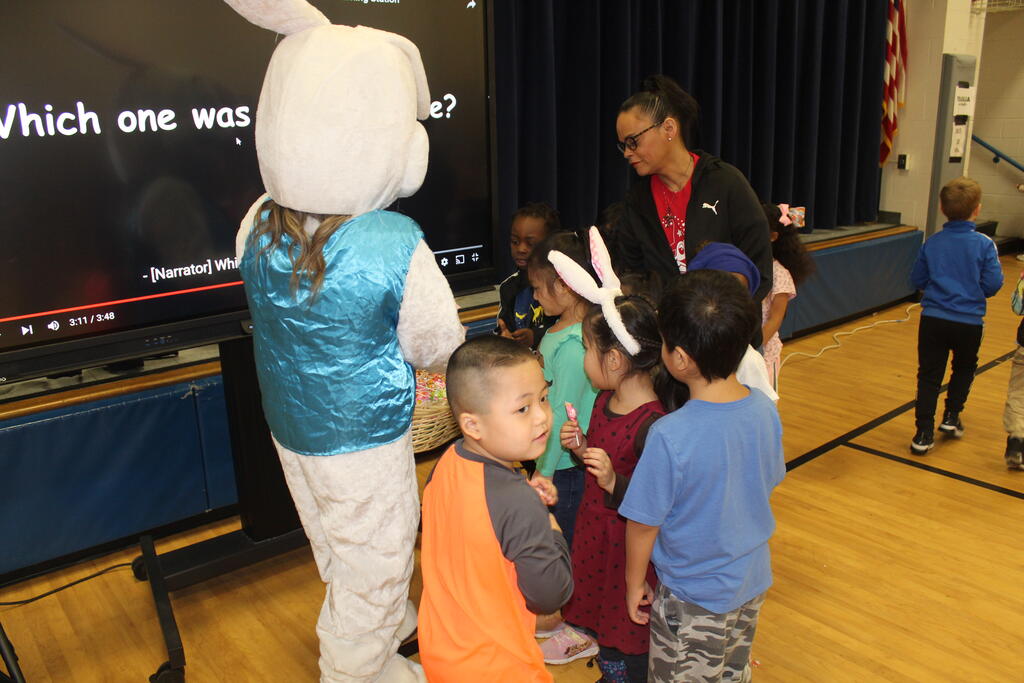वॉटसन की स्प्रिंग बनी प्रतियोगिता। स्प्रिंग बनी म्हणून कोणत्या शिक्षकाला पाहायचे आहे यावर विद्यार्थ्यांनी मतदान केले आणि सुश्री स्पेन्सर (द्वितीय श्रेणी शिक्षिका) निवडली गेली. तिने विद्यार्थ्यांना एक कथा वाचून दाखवली आणि कँडी पास केली.