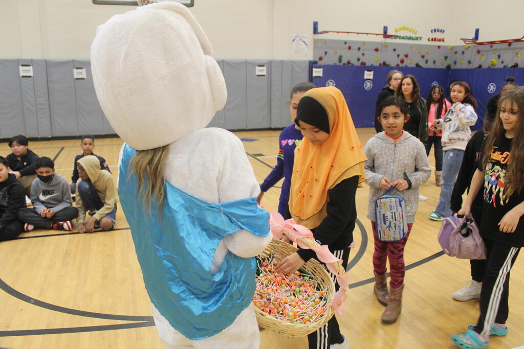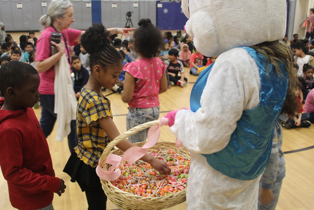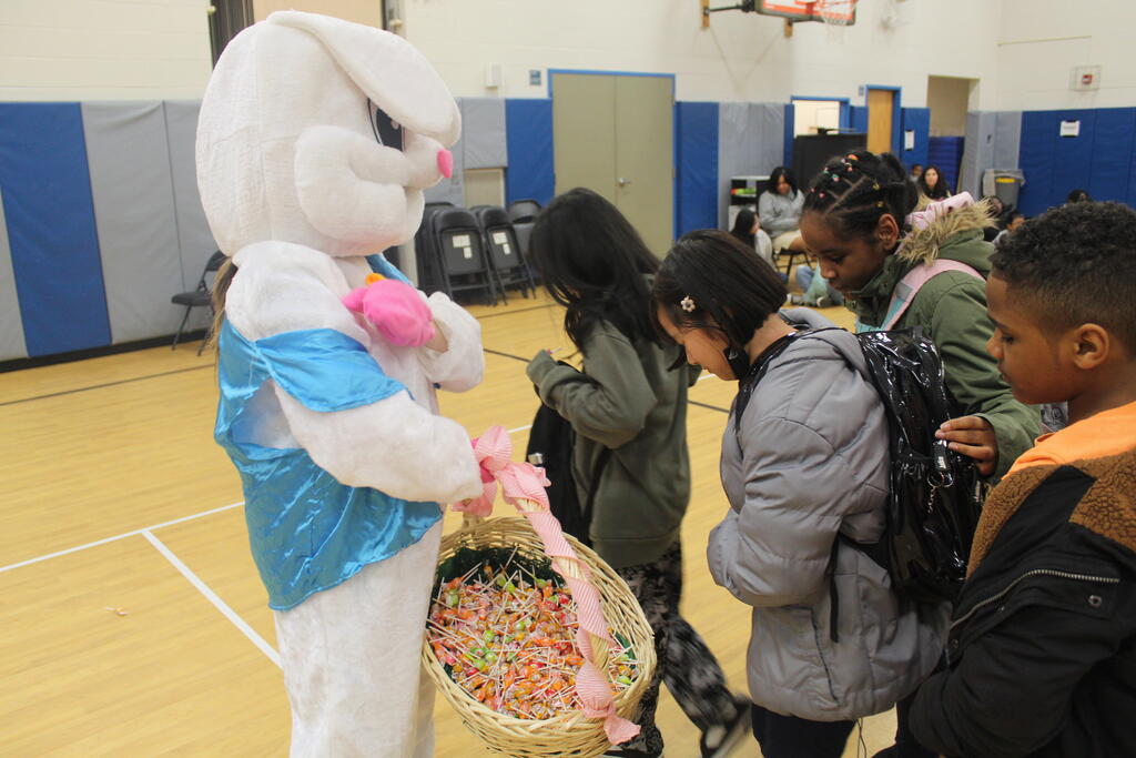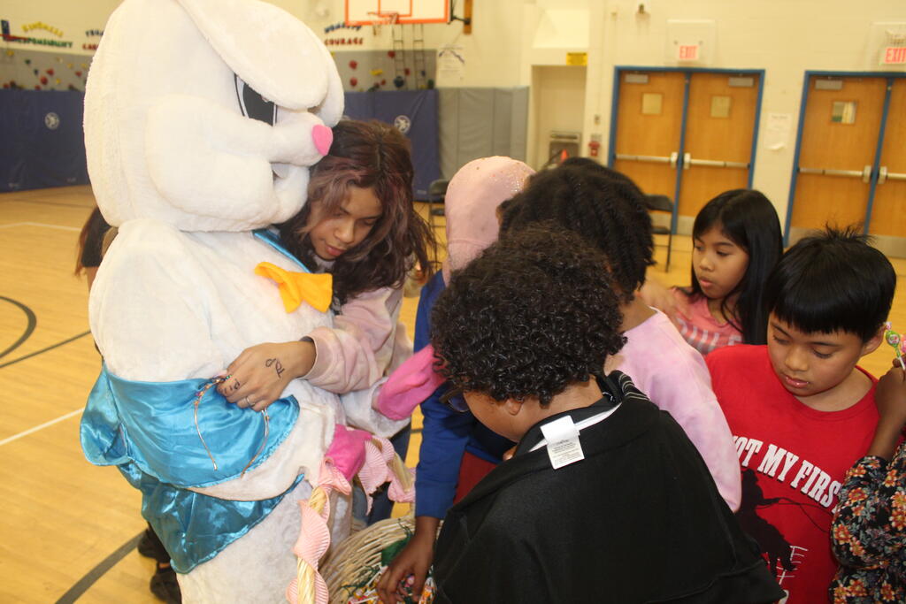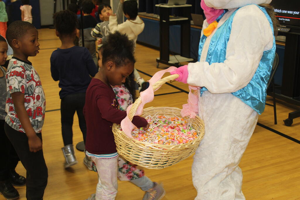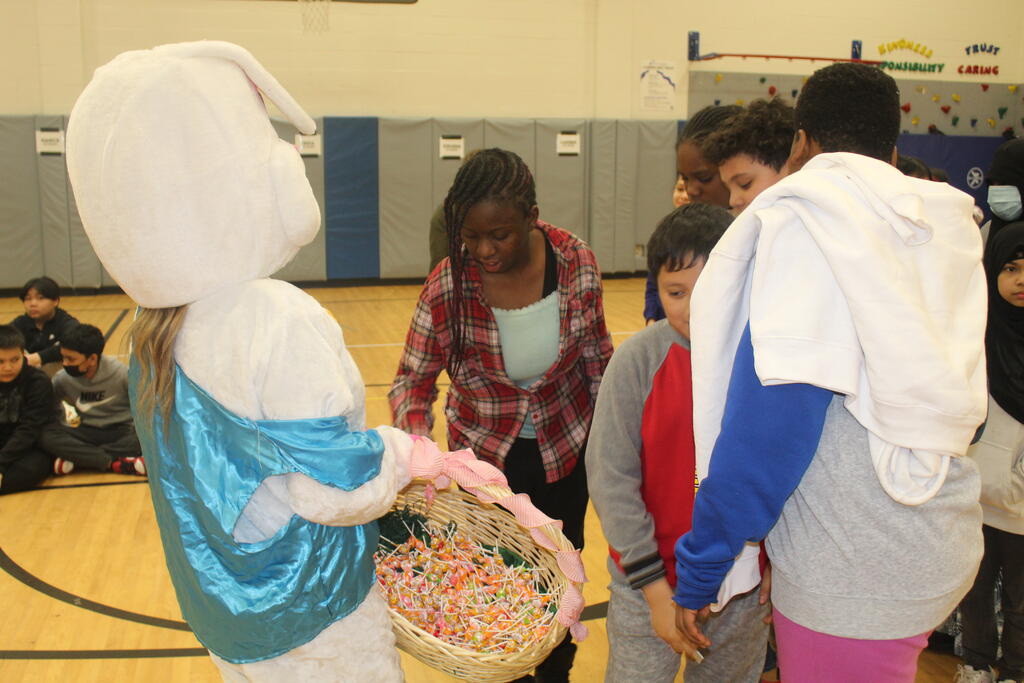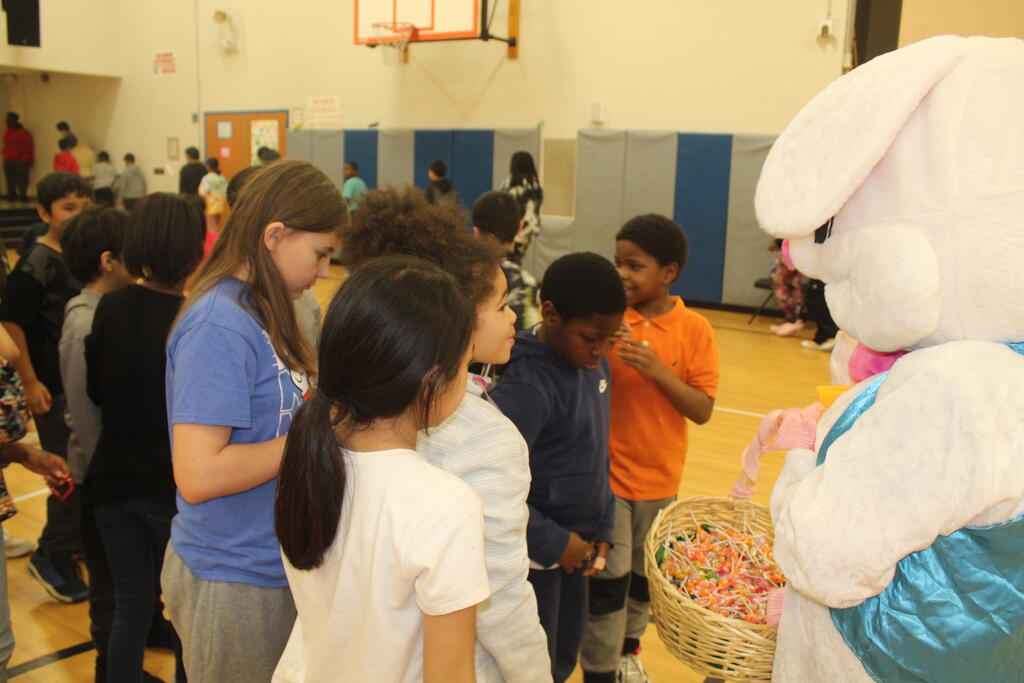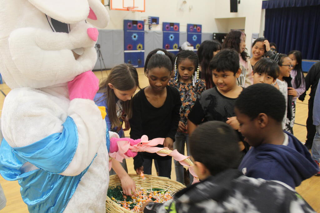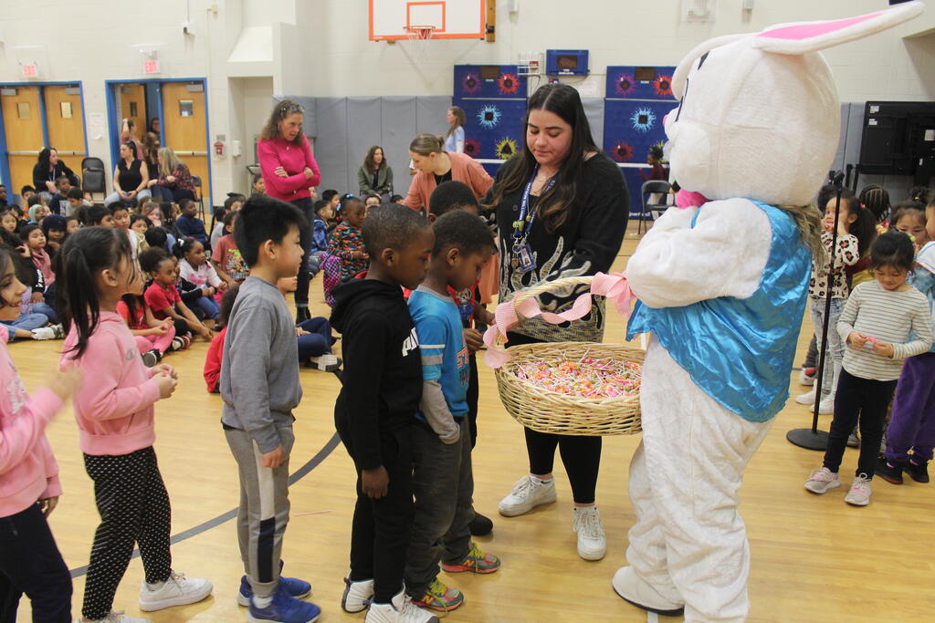 वॉटसन की स्प्रिंग बनी प्रतियोगिता। स्प्रिंग बनी म्हणून कोणत्या शिक्षकाला पाहायचे आहे यावर विद्यार्थ्यांनी मतदान केले आणि सुश्री स्पेन्सर (द्वितीय श्रेणी शिक्षिका) निवडली गेली. तिने विद्यार्थ्यांना एक कथा वाचून दाखवली आणि कँडी पास केली.